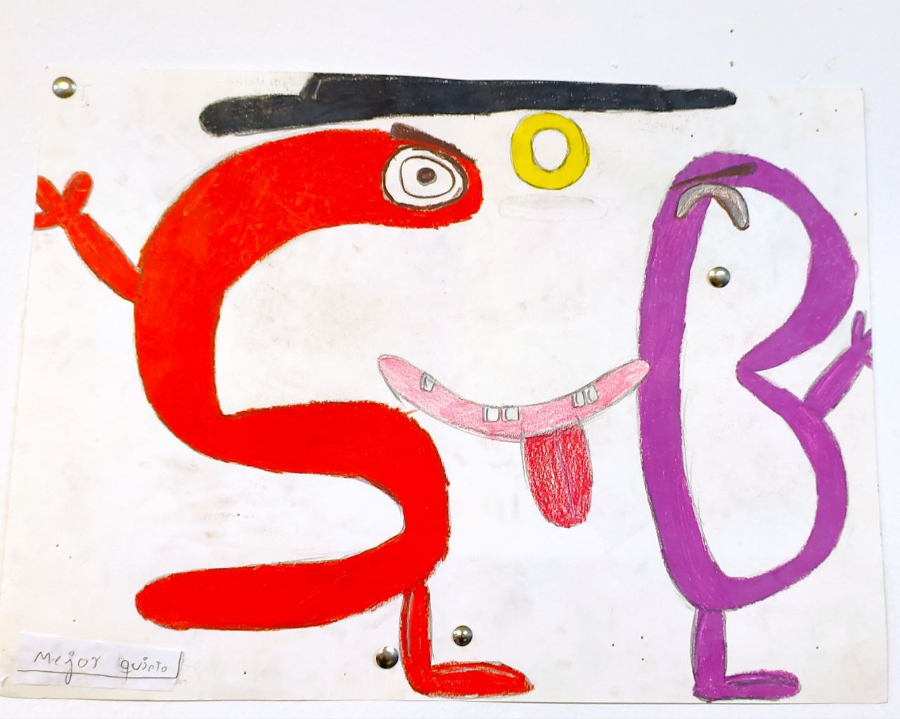 Durante la lectura de sugerencias en el aula, tanto el dibujo con el número uno, como el dibujo de Daniel, al que le ha correspondido el número diez, tenían tres votos. Es por ello que el Profe Fran ha tenido que votar para proclamar ganador a uno de los dos dibujos. Tras una difícil deliberación porque ambos dibujos eran muy buenos, el Profe Fran se decidió por el de Daniel, por lo que la mascota llamada «Mejor Quinto» será la representante del aula durante el curso 2022 – 2023.