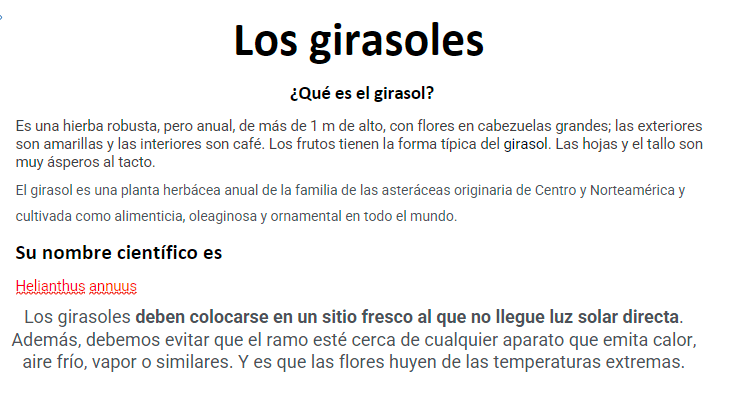 Características sobre los girasoles