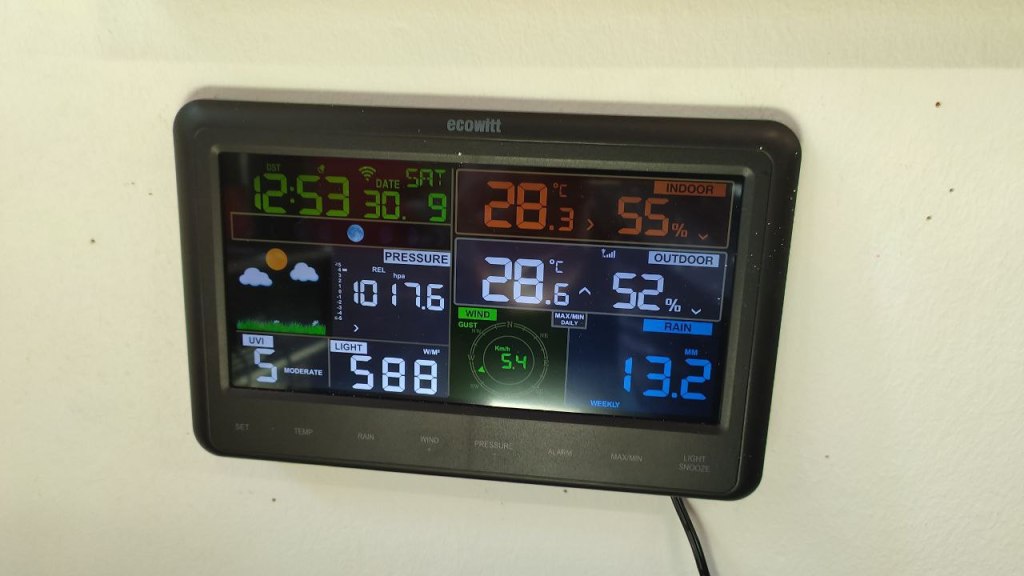 Tras ello, los compañeros de Meteo Elx han tenido la amabilidad de instalar en mi aula un receptor Ecowitt para que los educandos puedan consultar la información meteorológica en tiempo real de una manera muy cómoda.