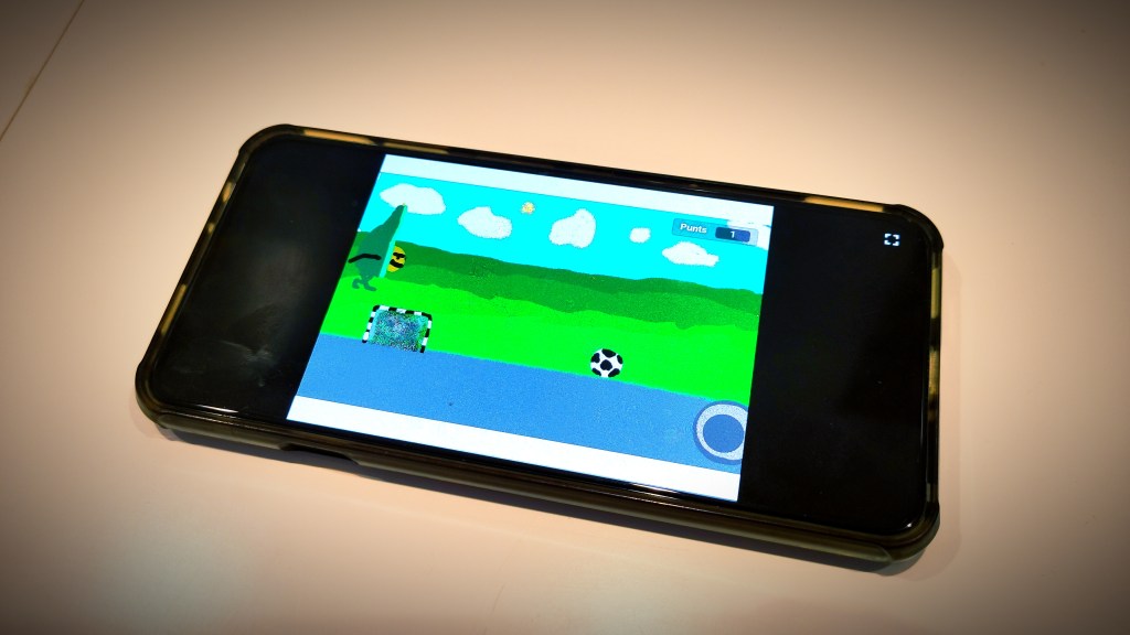 Por último, programamos nuestro juego gracias a los bloques de código visuales que ofrece Scratch, creando un videojuego de scroll lateral en el que debíamos esquivar obstáculos: