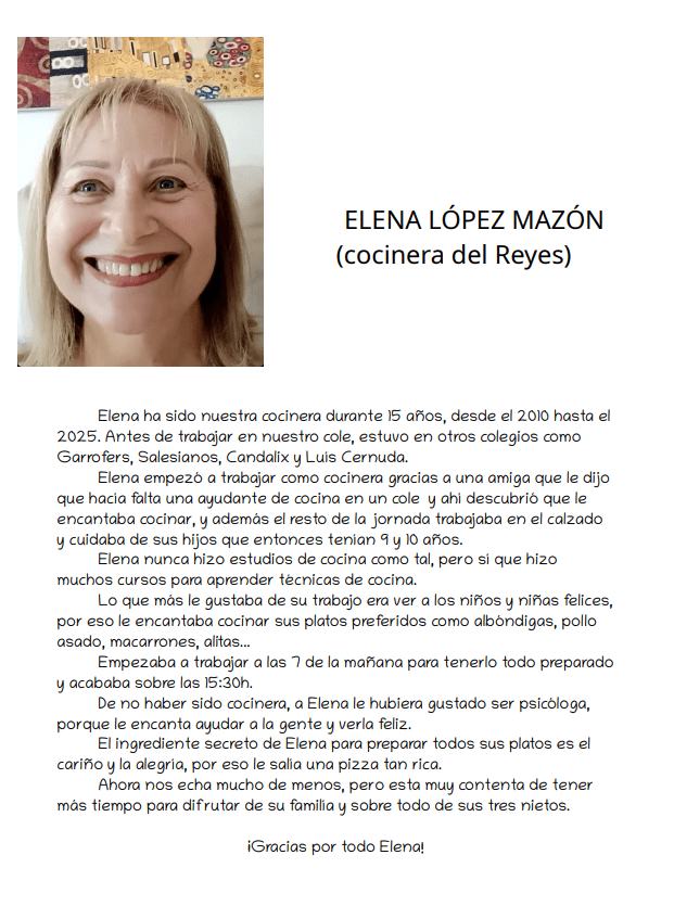 Elena fue la cocinera de nuestra escuela durante muchos años.